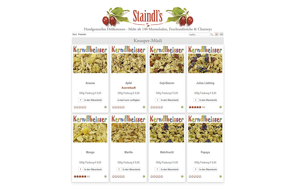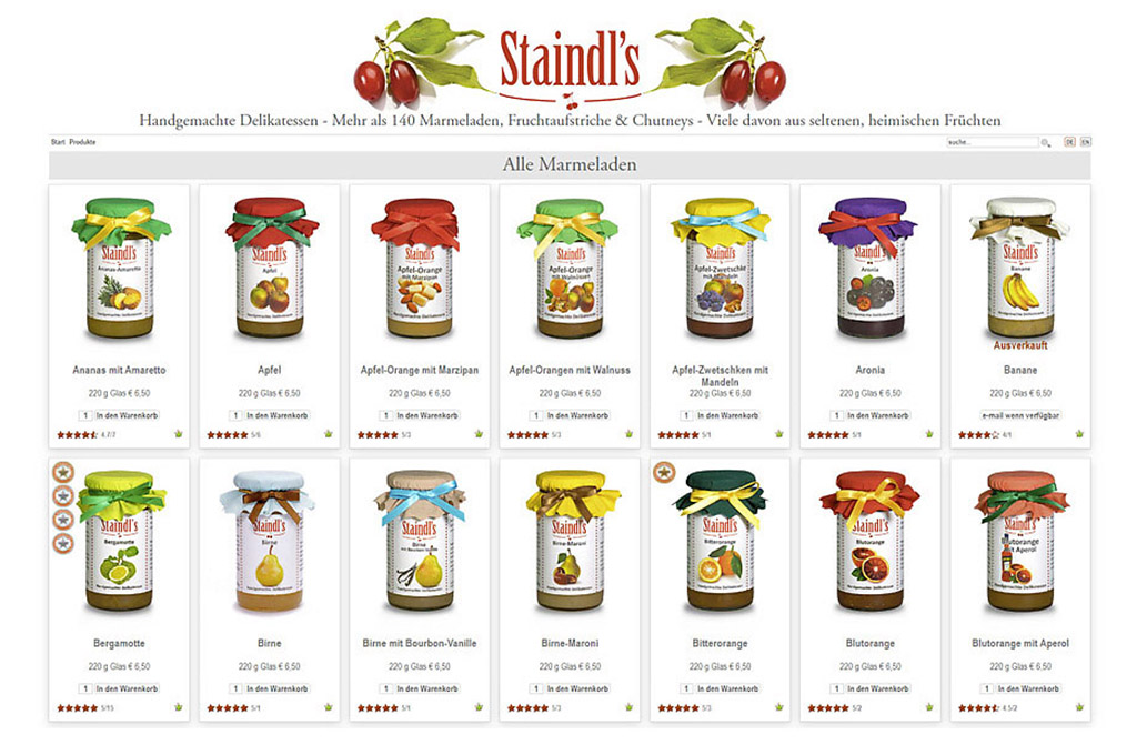 Staindl's ist eine kleine österreichische Manufaktur, die mehr als 140 Sorten handgemachte Marmeladen und Fruchtaufstriche anbietet.