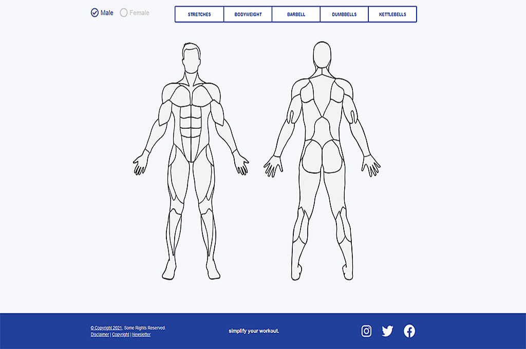 MuscleWiki is the ultimate tool if you want to exercise a particular muscle in your body. Just click on any of the muscles in the diagram.
