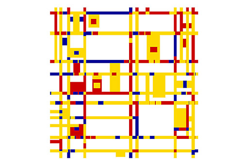 Animated version of Mondrian's painting 'Broadway Boogie Woogie', which is displayed at the Museum of Modern Art (MoMA) in New York City.