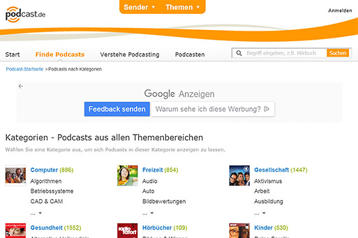 Tausende Podcasts (in Deutsch) nach Themenbereichen.