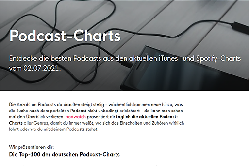 Podcast-Charts. Entdecke die besten Podcasts (in Deutsch) aus den aktuellen iTunes- und Spotify-Charts.