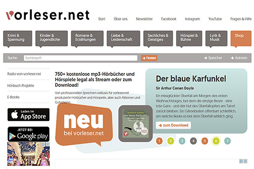 750+ kostenlose mp3-Hörbücher und Hörspiele legal als Stream oder zum Download!